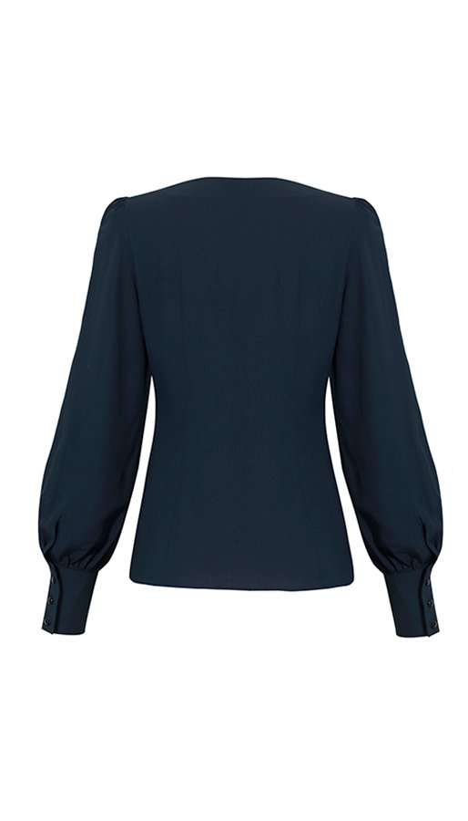 Gładka bluzka z długim rękawem, lekko przymarszczonym przy główce oraz przy mankiecie. Może być doskonałym uzupełnieniem innych elementów kolekcji. Przewiewna wiskoza zapewni komfort użytkowania przez cały dzień. Dekolt w serek. Mankiet zapinany na 3 guziczki. Zapięcie w szwie bocznym na kryty suwak.
