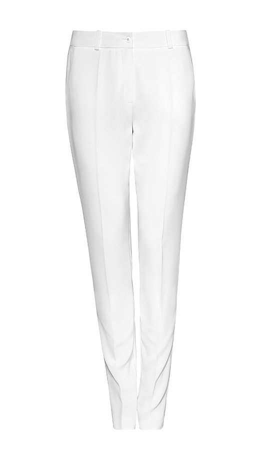 Eleganckie, klasyczne spodnie materiałowe. Zwężane nogawki wysmuklają sylwetkę. Zapinane na haczyk i kryty zamek. Fason ponadczasowy,świetny w różnych stylizacjach.