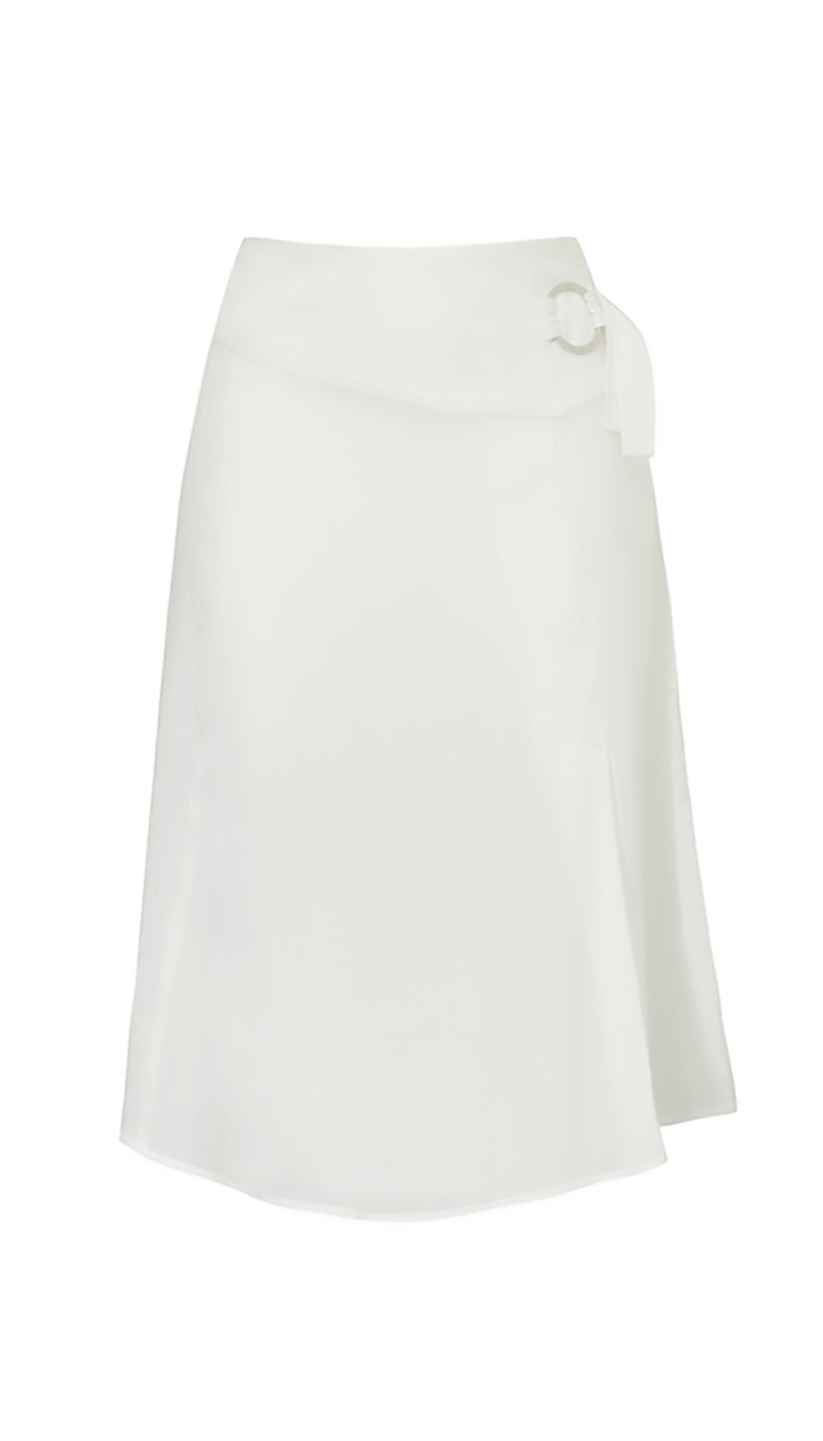 Letnia spódnica o ciekawym kroju wzbogacona metalowym ozdobnym kółkiem. Asymetryczny przód oraz karczek przyciągają wzrok i czynią z tej spódnicy coś więcej niż zwykły ubiór. Staje się ona odzwierciedleniem naszego spontanicznego i niebanalnego ducha. Zapięcie na suwak w bocznym szwie. Czyszczenie chemiczne lub ręczne.