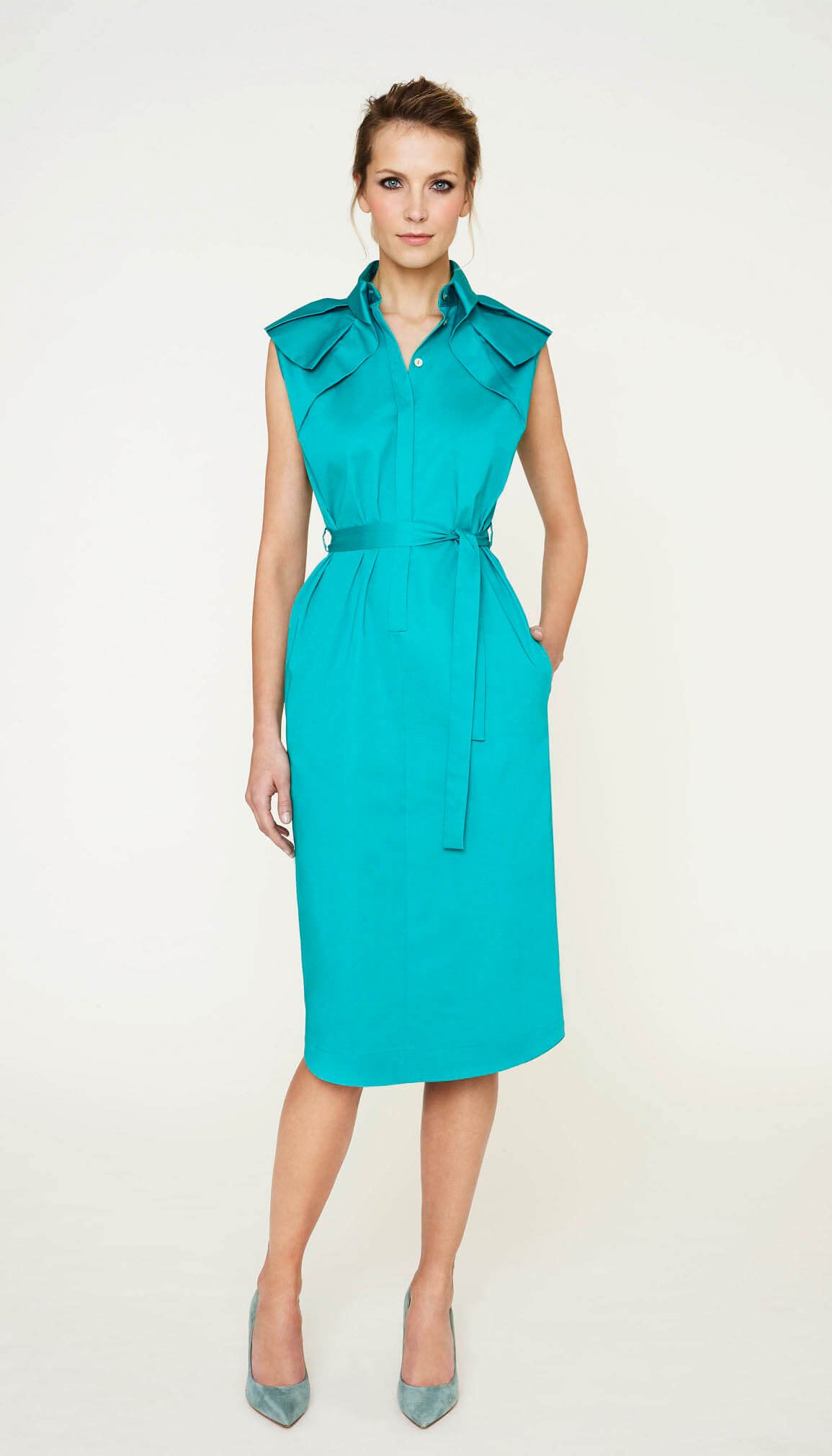 Collared neckline with frilled details gives elegance to this modern style dress. Made of cotton which provides a great comfort.
