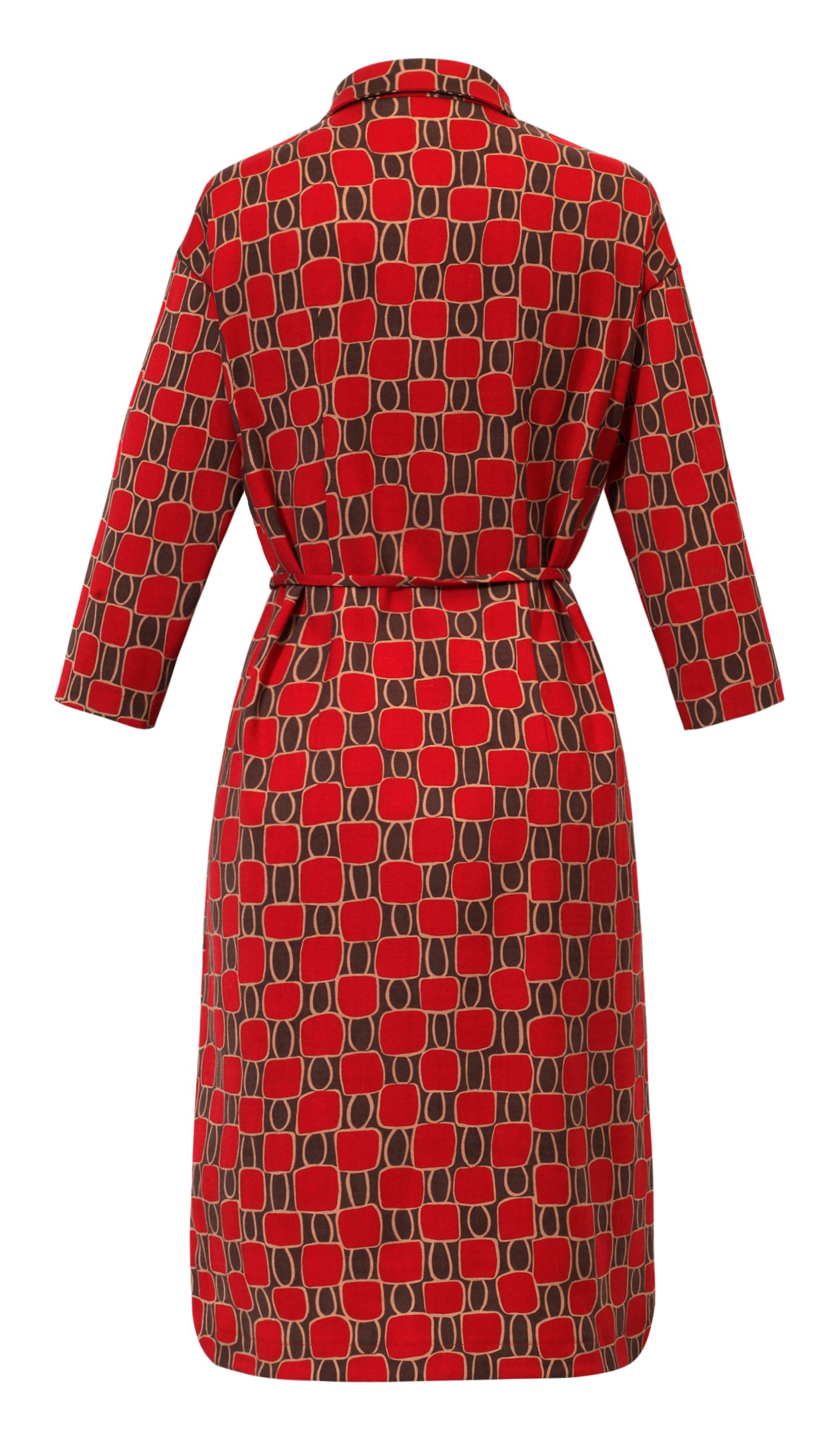 Excellent mix of yarns. Interesting geometric pattern in black and brown. Narrow belt in waist can be replaced with wider one if you prefer more agressive look. Oversize cut will ensure comfort of wearing.